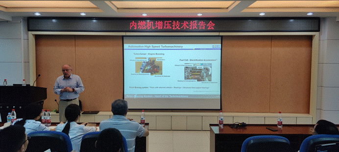 Kostandin研究员以“产品-工艺-汽车”数字孪生技术为题,从理论与实践两个方面介绍了轴承动力学在汽车方面的应用。他指出,当今对绿色技术的能源需求需要汽车高速涡轮机械的设计和制造过程发生根本性的变化。他从轴承系统性能、轴承系统转子动力学稳定性以及轴承系统在极端条件下面临的挑战三个方面展示了自己的研究内容。随后他对油膜非稳定性出现的原因进行了深度的剖析。最后Kostandin研究员以实际案例为教材,结合其自身的实践经验,详细介绍了汽车涡轮增压器振动与噪声之间的关系。